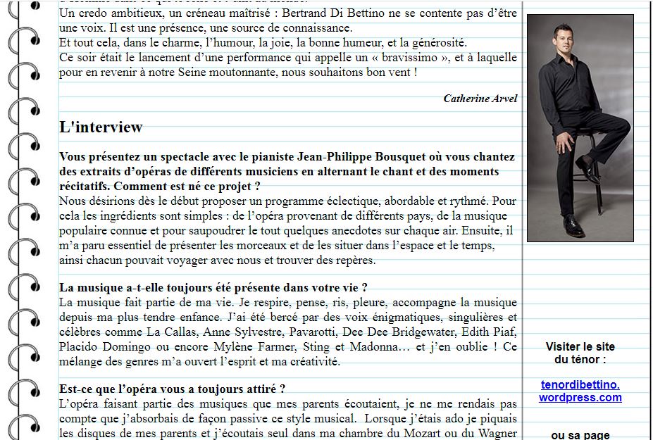 [Rétro] Article de presse élogieux sur le concert du Ténor Di Bettino au Bateau Daphné (Paris) le 1er mars dernier + interview!