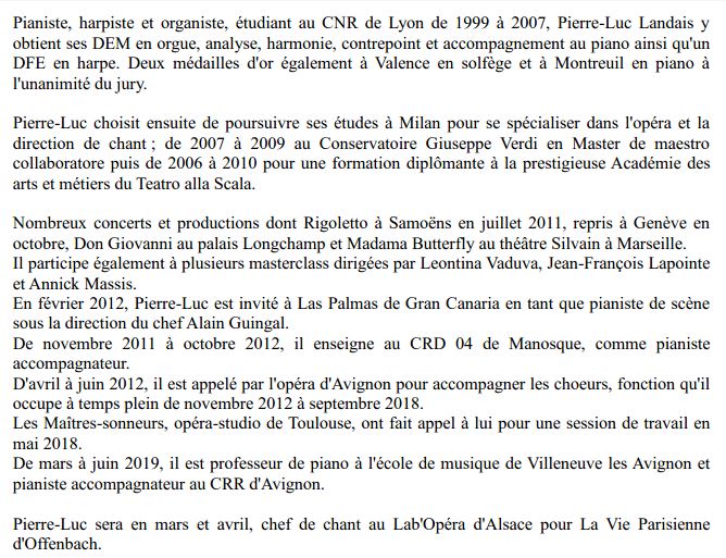 Le Ténor Di Bettino sera pour l’occasion accompagné du pianiste Pierre-Luc Landais (qui l’avait déjà accompagné lors d’un concert public à Rognonas en janvier dernier).