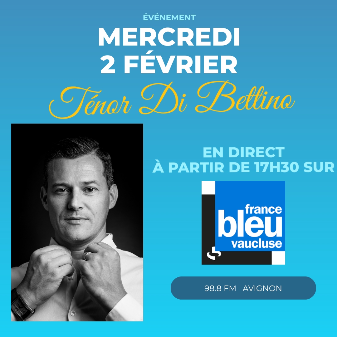 Mercredi 2 février, Le Ténor Di Bettino était l’invité de l’émission « Happy hours » sur les ondes de France Bleu Vaucluse. L’entretien a été l’occasion pour le Ténor d’évoquer sa voix, son album « Tenore d’amore », ses concerts… Ecoutez ou réécoutez l’émission dès maintenant en cliquant sur la vidéo. N’oubliez pas de la liker, de la commenter et de vous abonner à la chaîne YouTube du Ténor Di Bettino!