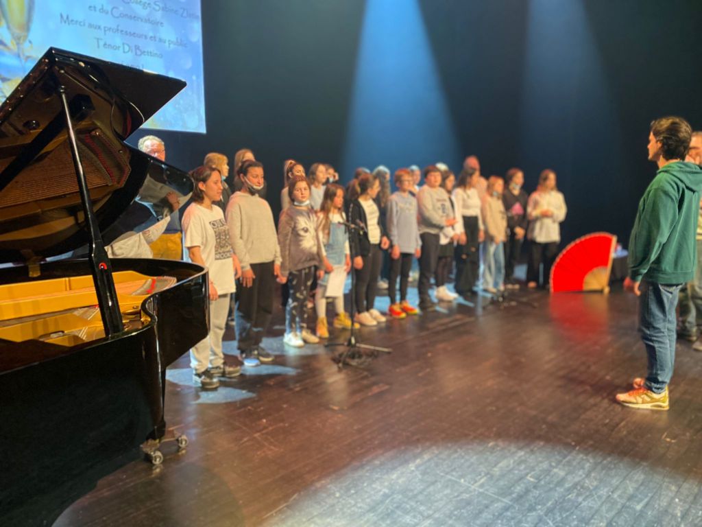 Les élèves du Collège Sabine Zlatin ont accompagné le Ténor sur scène sur l’air de « La donna è mobile » (opéra « Rigoletto » de Verdi). Ci-dessous, quelques photos et vidéos du concert-événement.