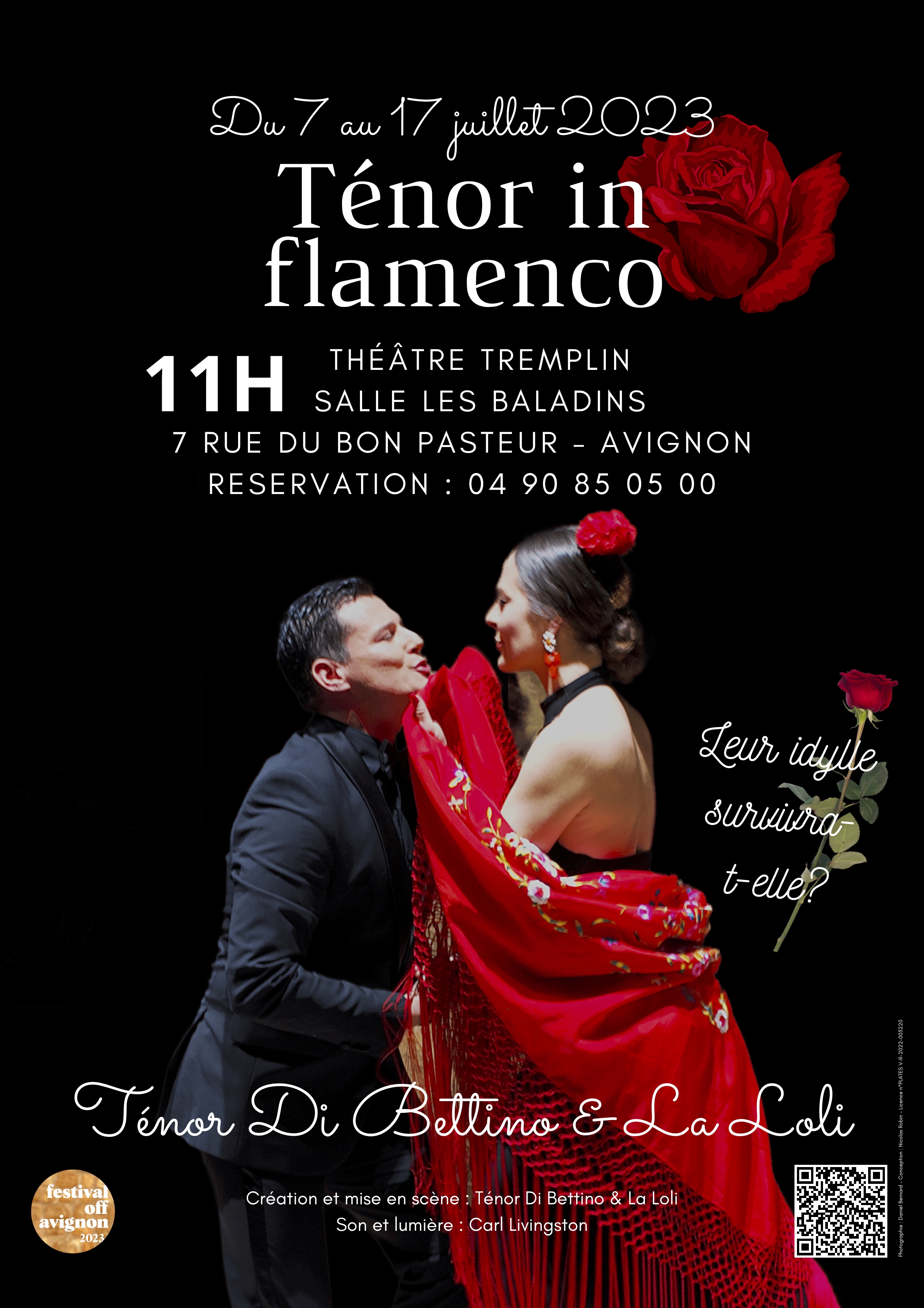 Le Ténor Di Bettino accompagné de la danseuse flamenco La Loli proposera une création originale au Festival Off d’Avignon 2023 : « Ténor in flamenco », du 7 au 17 juillet au Théâtre Tremplin à 11h (Salle Les Baladins, relâche le 13). Durée 1h.