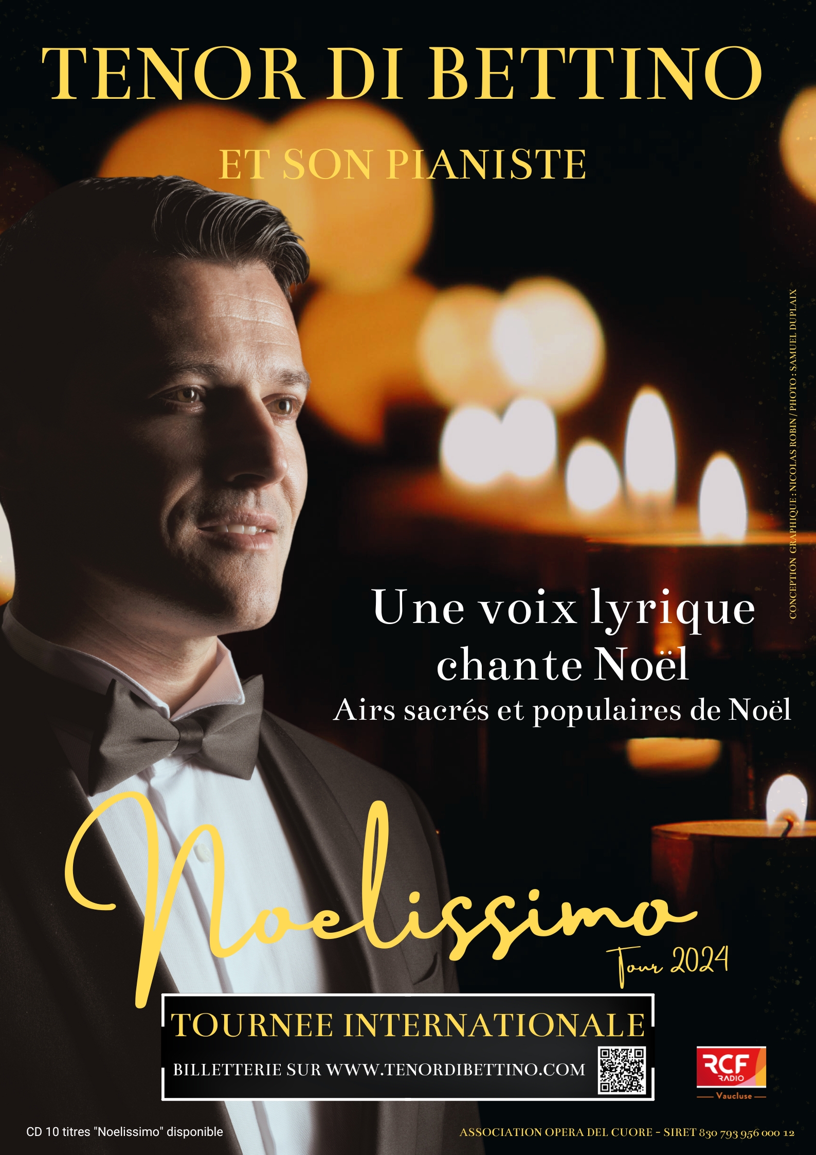 Après une première tournée de Noël à succès en 2023, le Ténor Di Bettino vous propose « Noelissimo » Tour 2024 à partir du 30 novembre, dans le Sud de la France et en Suisse, pour vous interpréter les plus beaux airs de Noël et airs sacrés dans les lieux les plus inspirants.