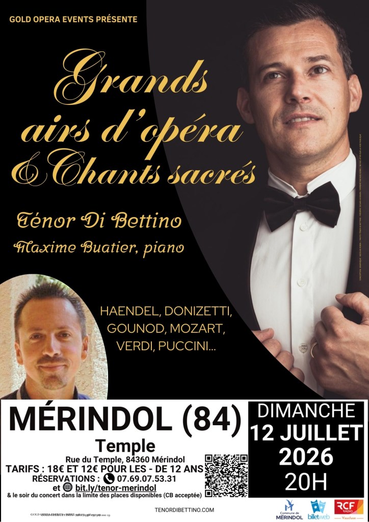 Infos & réservations : https://www.billetweb.fr/grands-airs-dopera-et-chants-sacres-tenor-di-bettino-au-temple-de-merindol-84 ou https://bit.ly/tenor-merindol ou https://bit.ly/tenor-merindol et par téléphone 07.69.07.53.31.