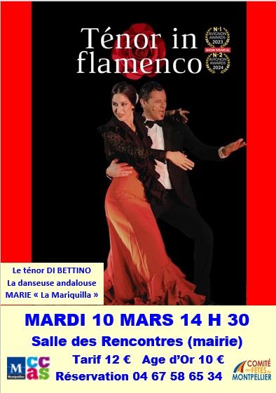 MARDI 10 MARS 2026 – MONTPELLIER (34) – SALLE DES RENCONTRES (MAIRIE DE MONTPELLIER) – « TENOR IN FLAMENCO » (Ténor Di Bettino & Marie « La Mariquilla ») – 14H30.