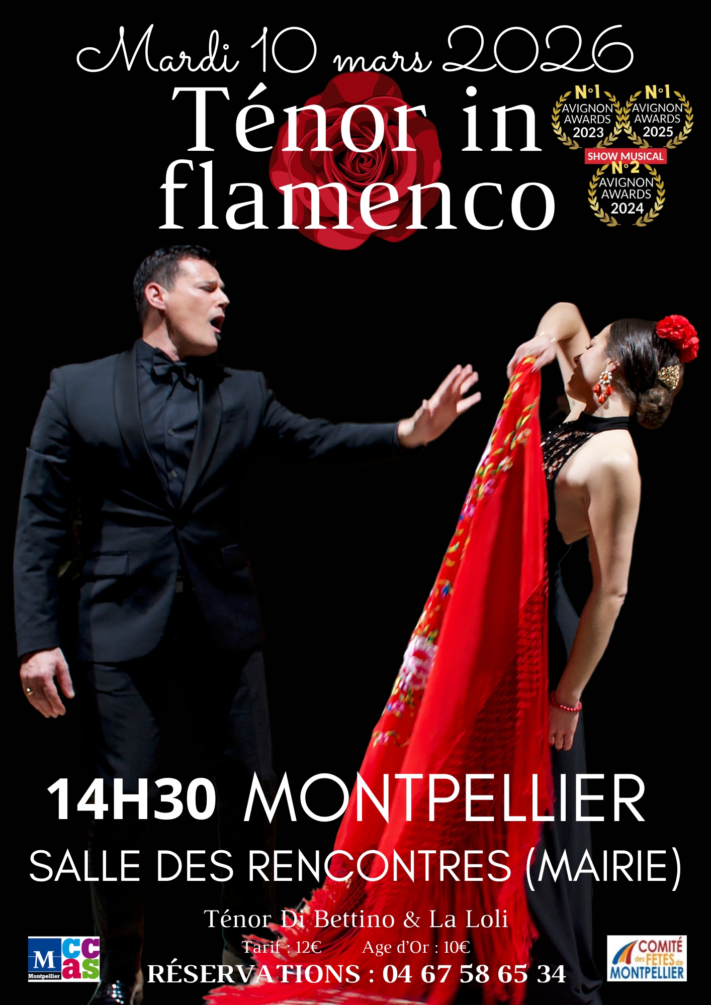 MARDI 10 MARS 2026 – MONTPELLIER (34) – SALLE DES RENCONTRES (MAIRIE DE MONTPELLIER) – « TÉNOR IN FLAMENCO » (Ténor Di Bettino & La Loli) – 14H30.