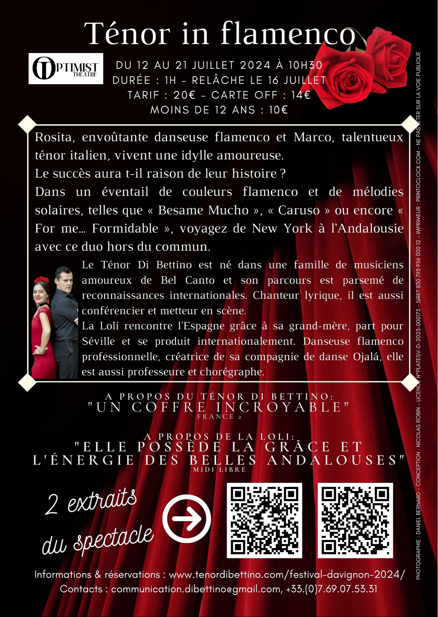 Le spectacle est au programme officiel du Festival Off d’Avignon 2024 sur cette page : https://www.festivaloffavignon.com/spectacles/5396-tenor-in-flamenco.