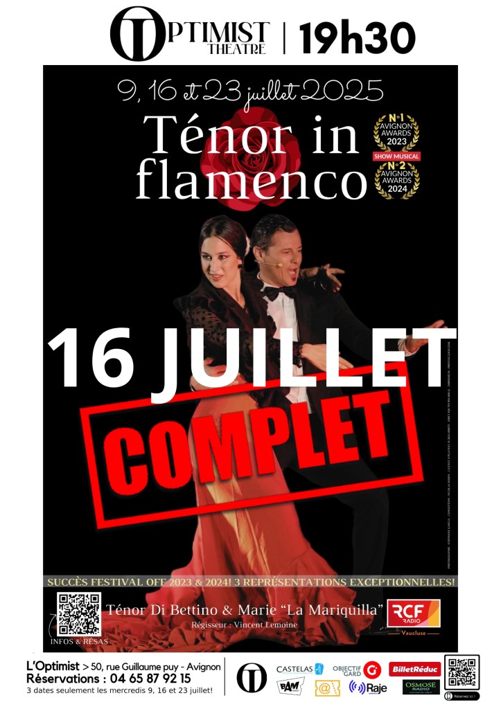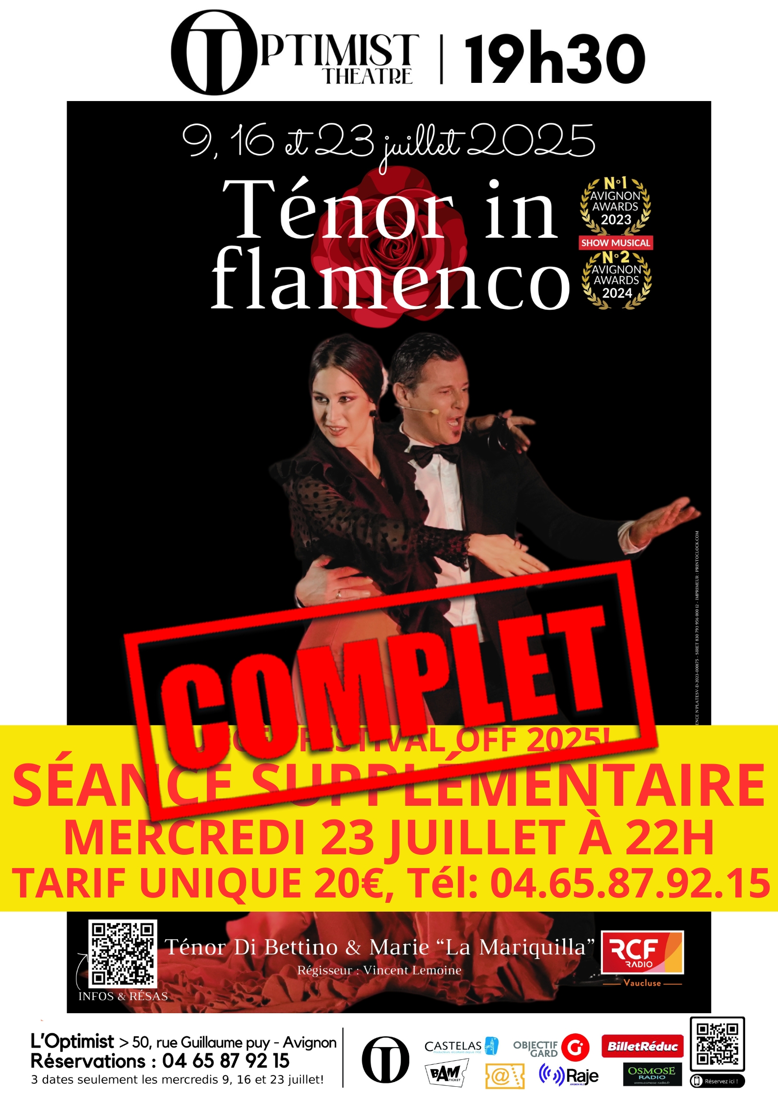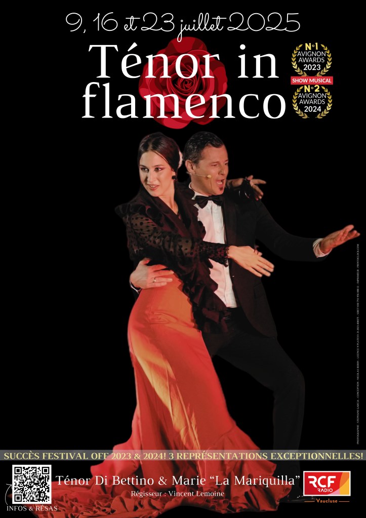 « Ténor in flamenco » au Festival Off d’Avignon 2025 les mercredis 9, 16 & 23 juillet 2025, au Théâtre de l’Optimist à 19h30 (et 22h le 23/07 seulement). C’est la troisième programmation du spectacle au Festival Off d’Avignon, après une première participation en 2023 et une seconde participation en 2024.
