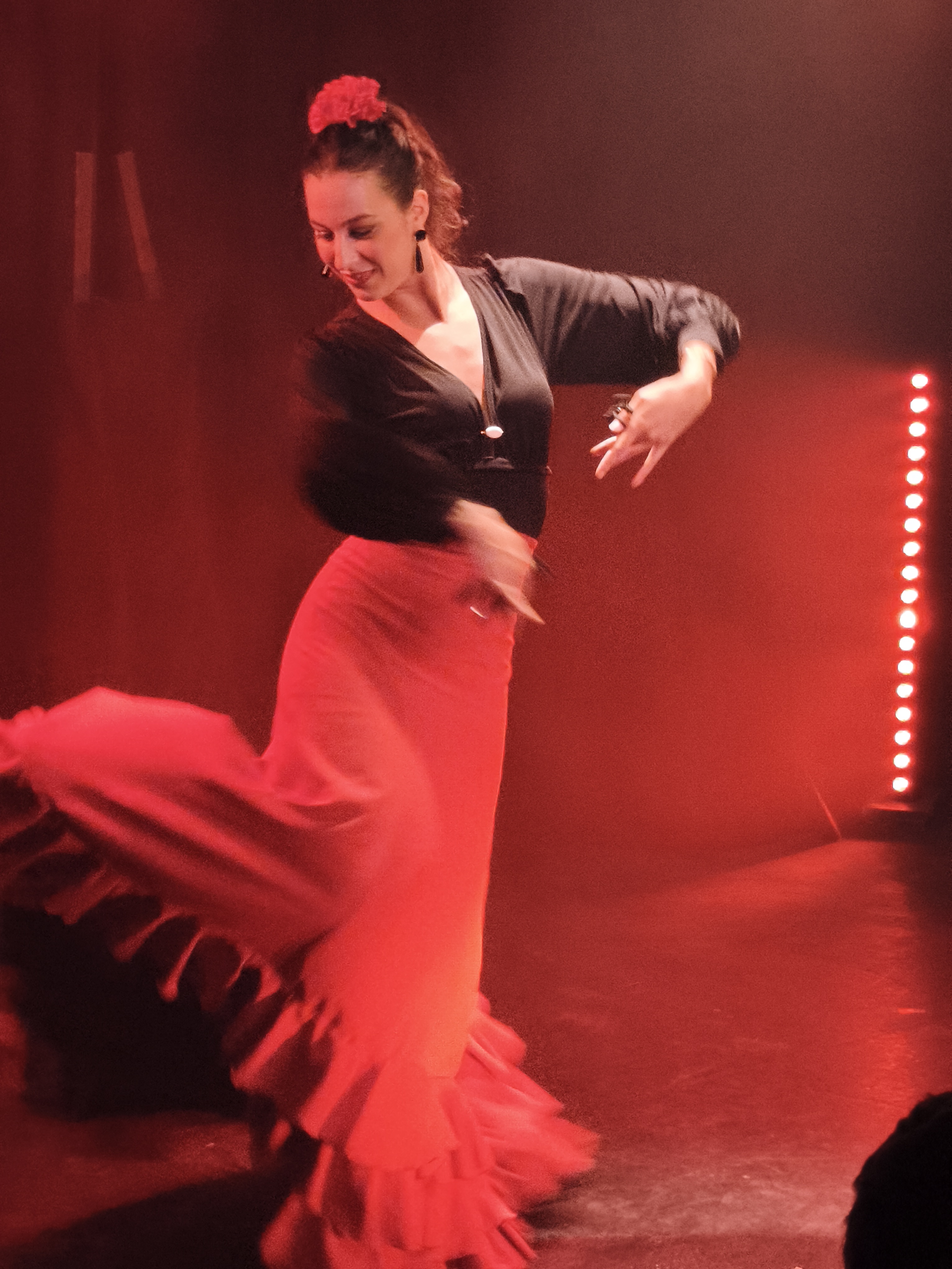 Marie commence la danse à l’âge de 7 ans. A 23 ans, elle se licencie à l’université de Nice en pédagogie de la danse. Après des études en danses académiques (jazz, contemporain & classique), elle intègre plusieurs compagnies de danse, dont la compagnie Instinct. Elle co-fonde en 2018 la compagnie Madame dans sa rue, au sein de laquelle pendant plus de 3 ans elle sera à la fois chorégraphe et interprète. A Séville, elle s’initie au flamenco, pour lequel elle se passionne. Elle intègre le prestigieux centre de formation Christina Heeren où elle s’y forme durant 2 ans. Depuis, elle propose des créations à la fois traditionnelles, personnelles et originales, fusionnant le flamenco avec d’autres formes artistiques.
