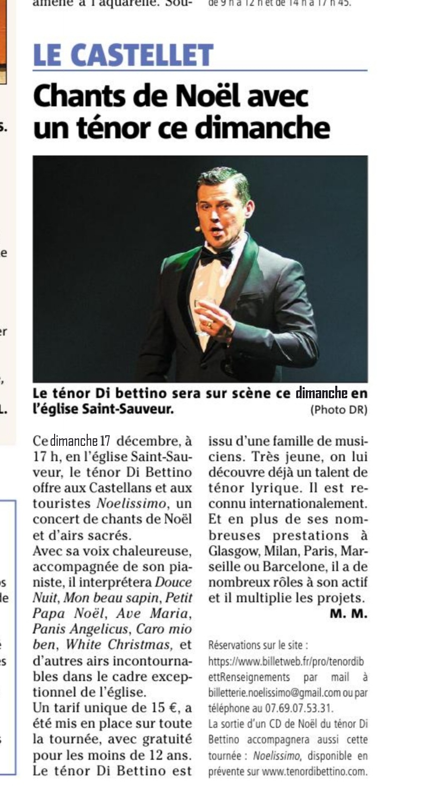 Le Ténor Di Bettino présente « Noelissimo » et le concert aux Saintes-Maries-de-la-Mer le 30 décembre 2023 à MediaChato.