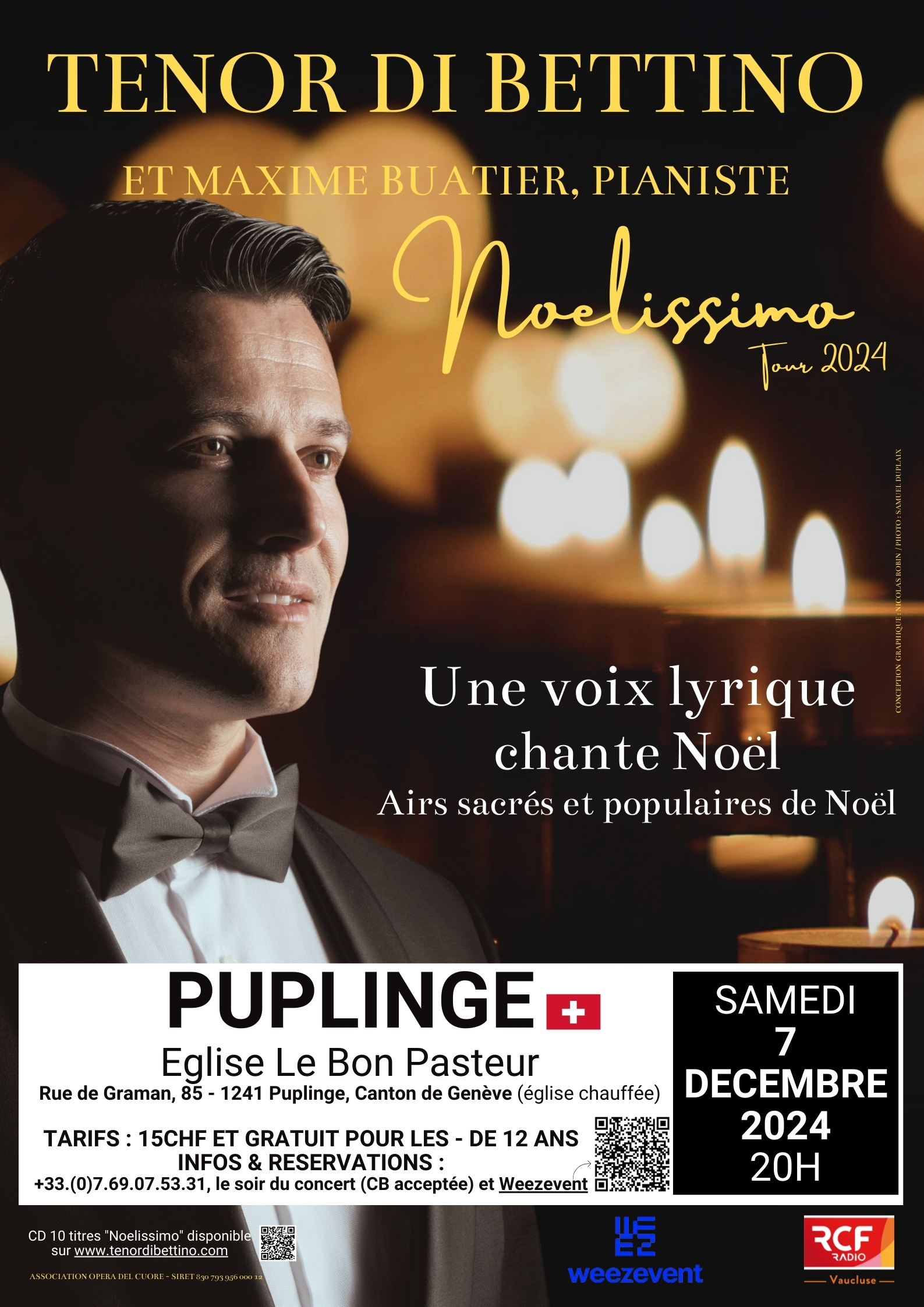 samedi 7 décembre 2024 : Puplinge (canton de Genève, Suisse), église Le Bon Pasteur, 20h.