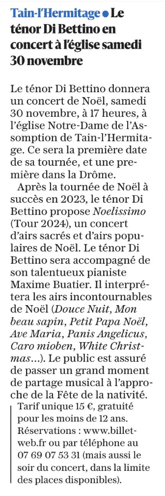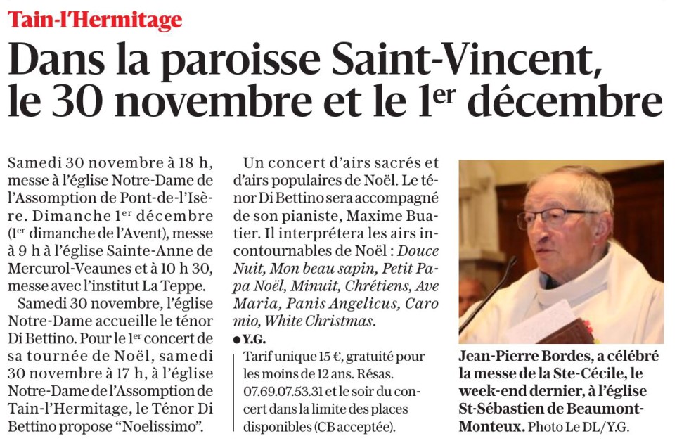 sur le concert à Tain L’Hermitage (26) paru le 29 novembre 2024.