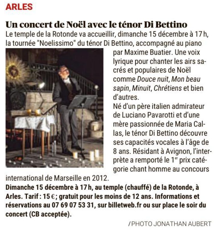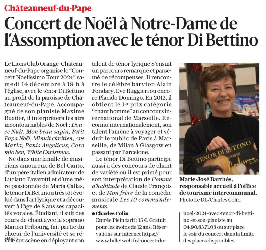 Le Ténor Di Bettino présente sa tournée « Noelissimo » dans le Vaucluse et son concert à Avignon au micro de RCF Vaucluse (Maryse Chauvaux).