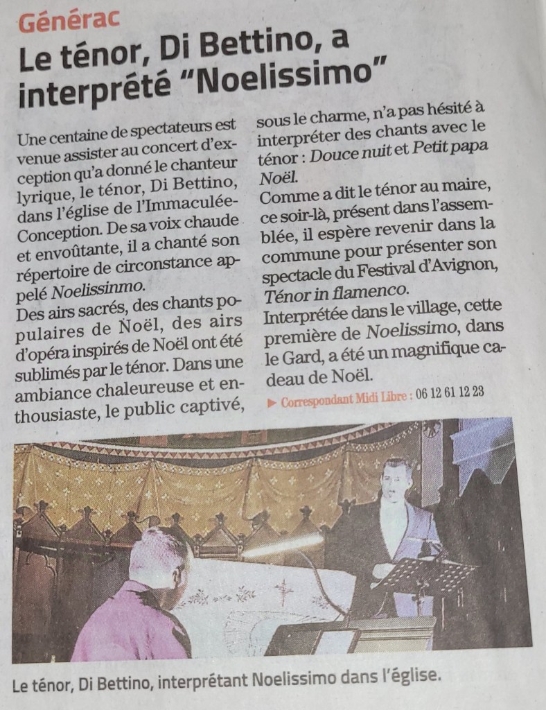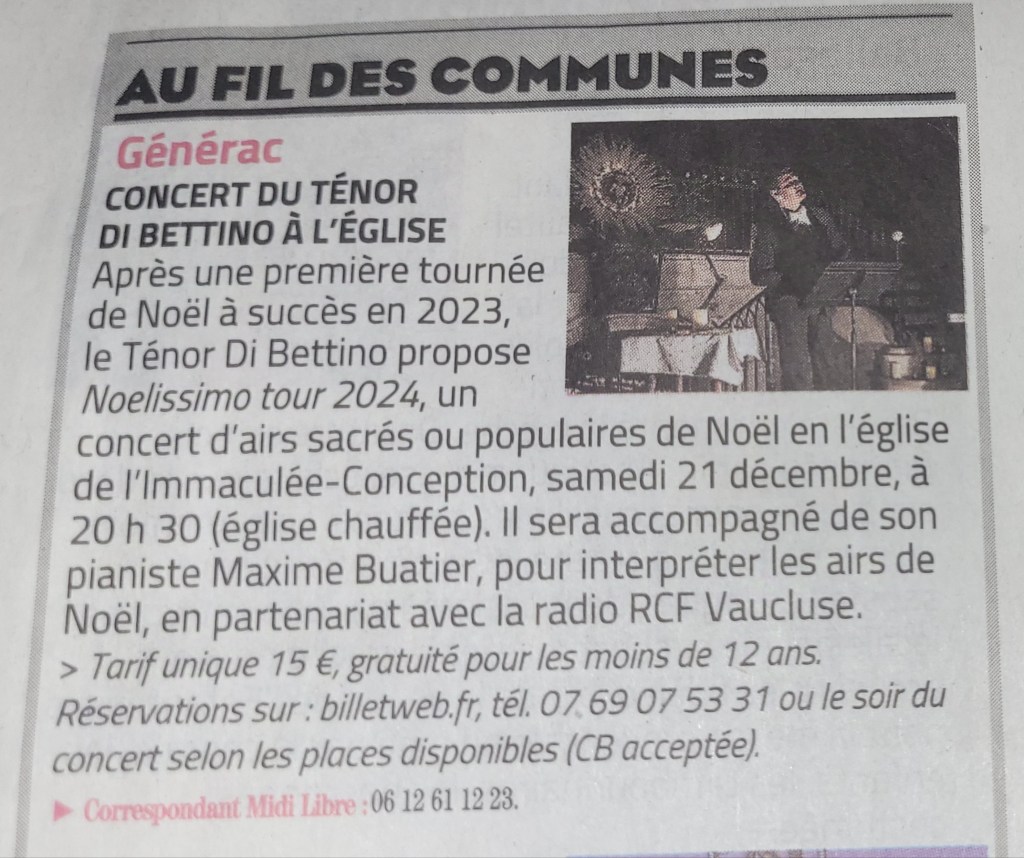 sur le concert à Châteauneuf-du-Pape (84) paru le 7 décembre 2024.