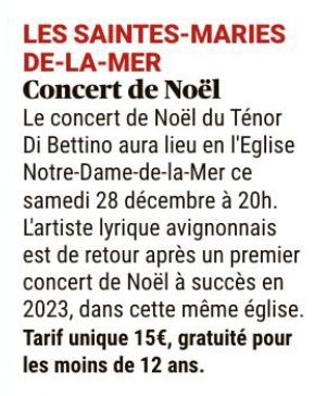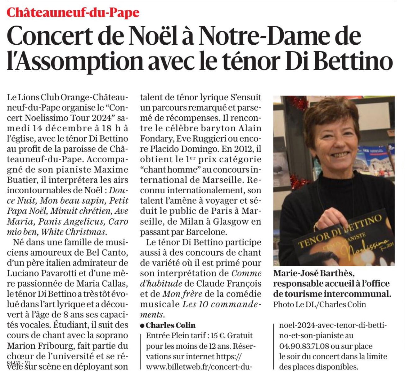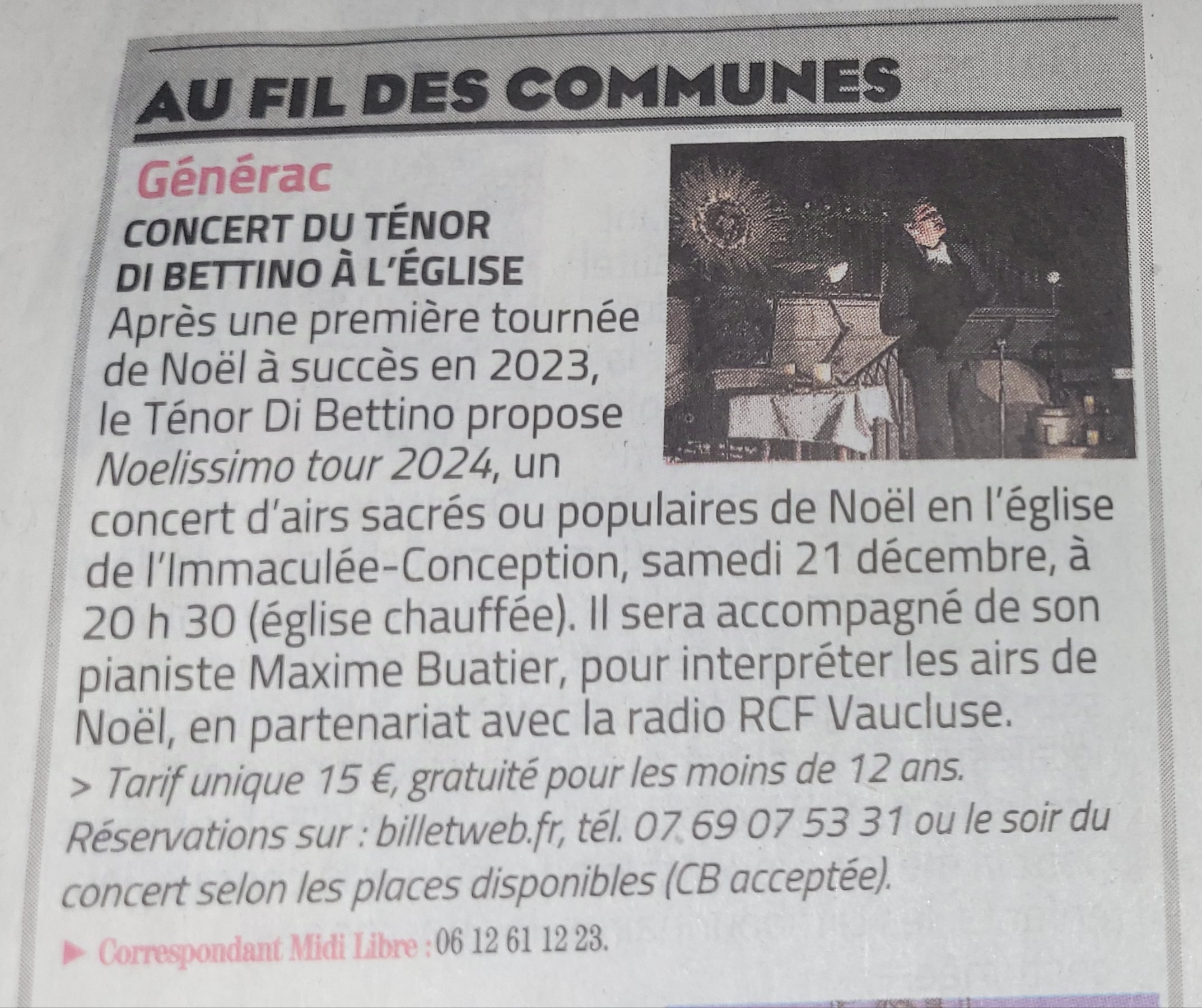 sur le concert à Châteauneuf-du-Pape (84) paru le 7 décembre 2024.