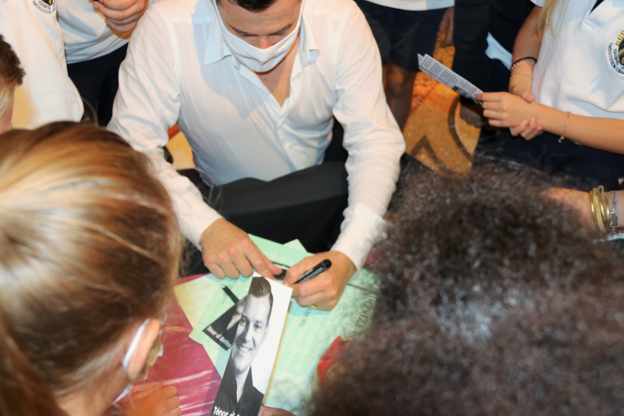 Après sa prestation, les élèves ont le Ténor Di Bettino dans la peau! (souvenir d’une dédicace inédite, après épuisement des marque-pages distribués en fin de prestation)