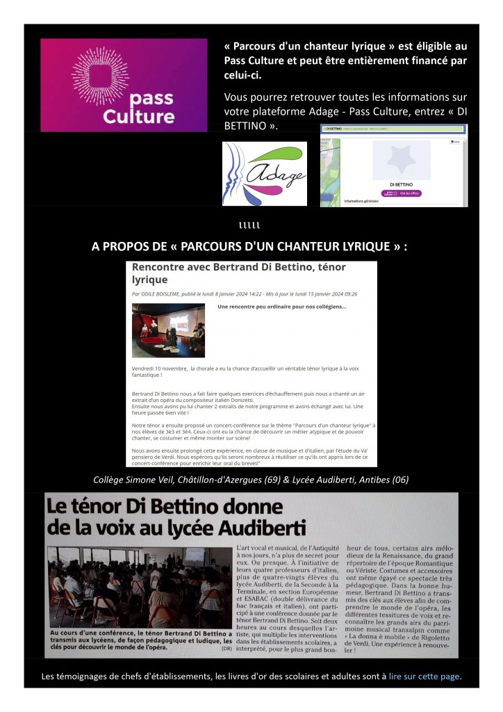 « Pour la deuxième année consécutive, le chanteur Bertrand Di Bettino est venu donner un concert conférence aux élèves italianistes de cinquième […] »