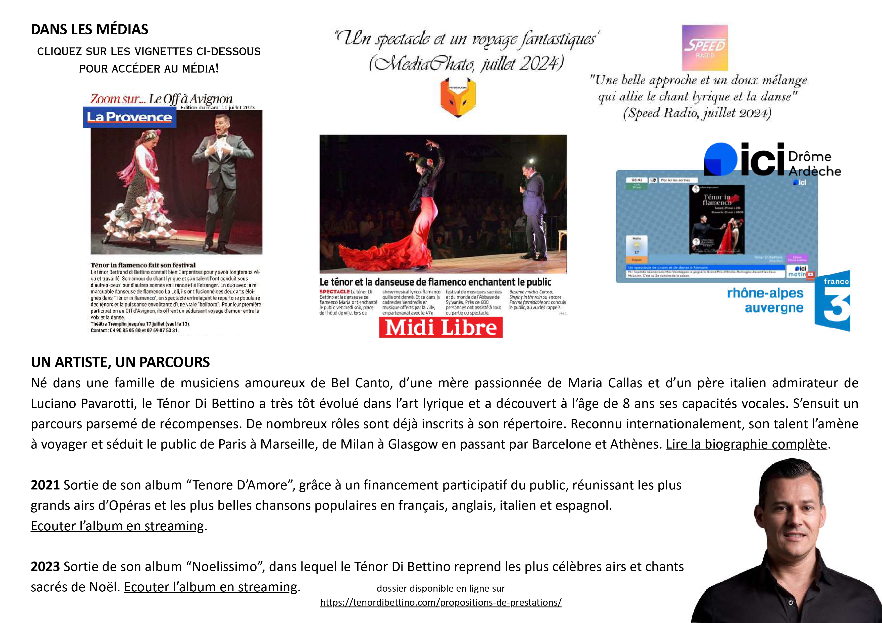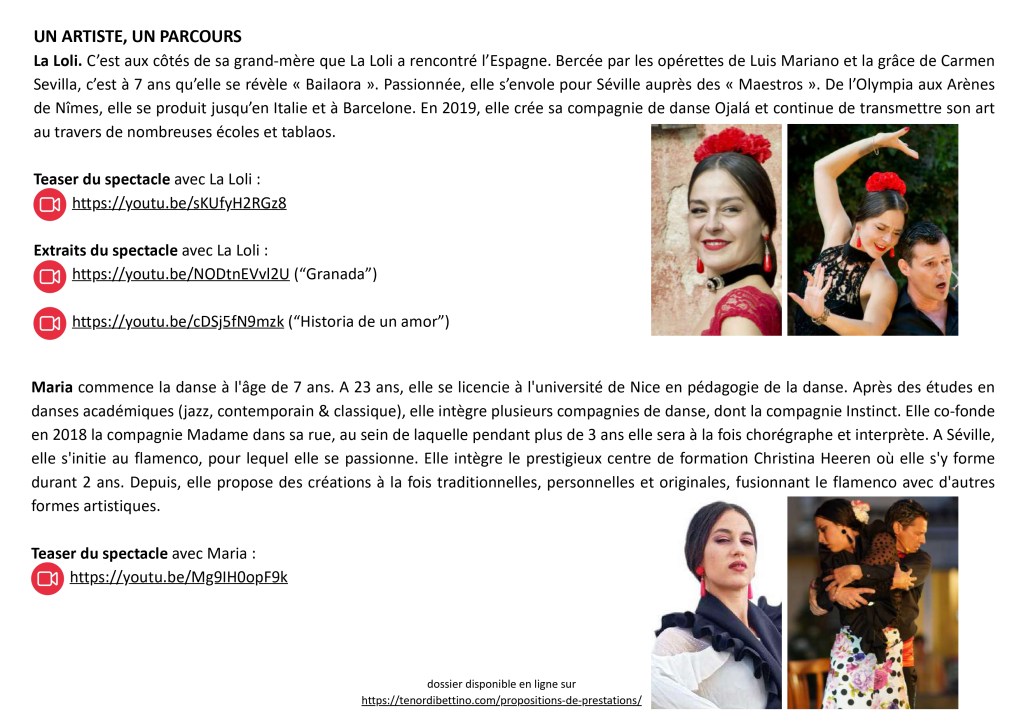 « Nous souhaitions fusionner et faire connaître au grand public ces deux mondes qui semblent éloignés : le lyrisme et le flamenco. Nous voulions créer un spectacle qui allie la voix de ténor, la danse et le théâtre. « Ténor in flamenco » est né : ce spectacle revisite des airs très connus du répertoire espagnol et plus largement celui du répertoire populaire des ténors, il les met en scène avec des chorégraphies du style flamenco. » Ténor Di Bettino & La Loli.